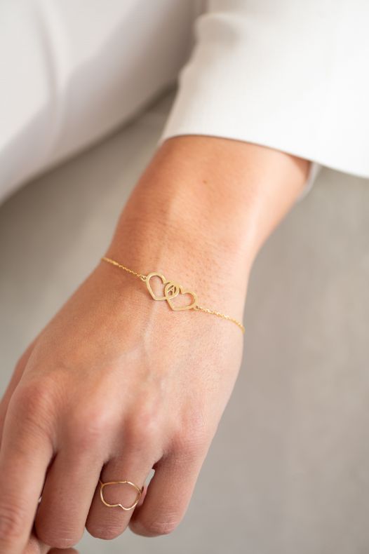 Fazon: Dupla kontúr szív betűvel sárga arany 14K karkötő