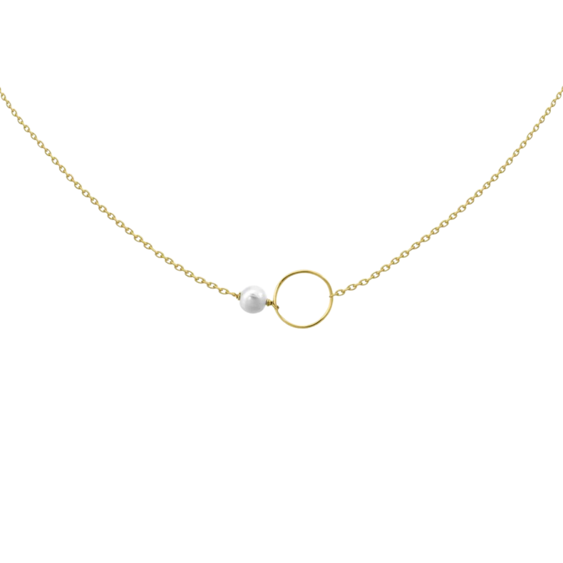 Fazon: Édesvízi Gyöngy és Kontúr Kör Sárga Arany 14K Nyaklánc