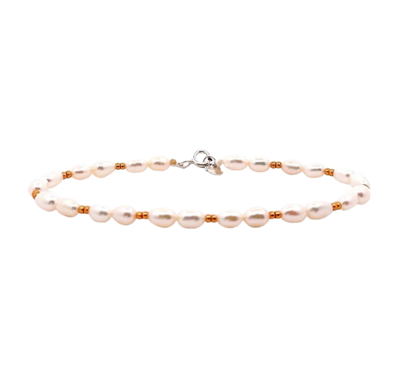Fazon: VFehér Édesvízi Gyöngy és Sárga Arany Kásagyöngy Ezüst 925 Karkötő