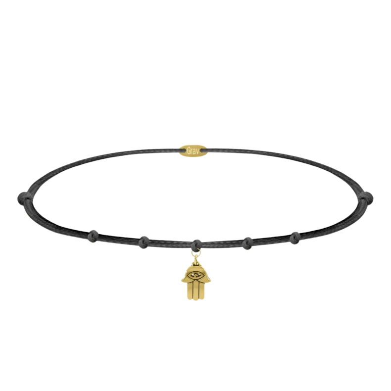 Fazon: 7 Csomós Fekete Fonalas Karkötő Sárga Arany 14K Medállal