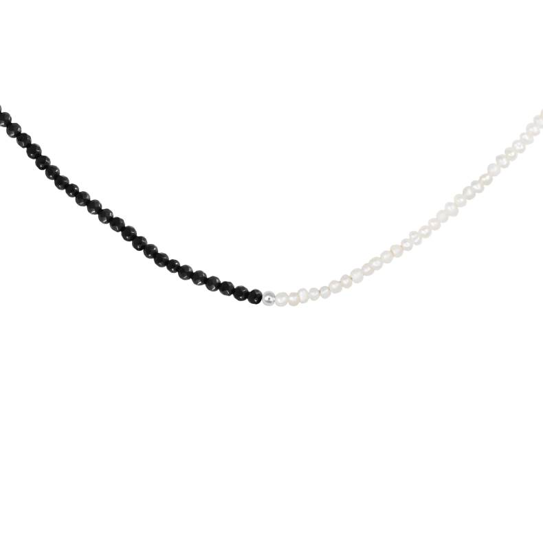Fazon: Fekete Ónix és Édesvízi Kis Gyöngy Ezüst 925 Nyaklánc