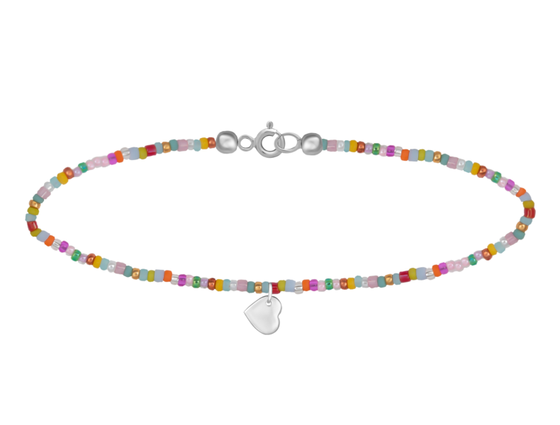 Fazon: Színes Gyöngy Szív Ezüst 925 Karkötő