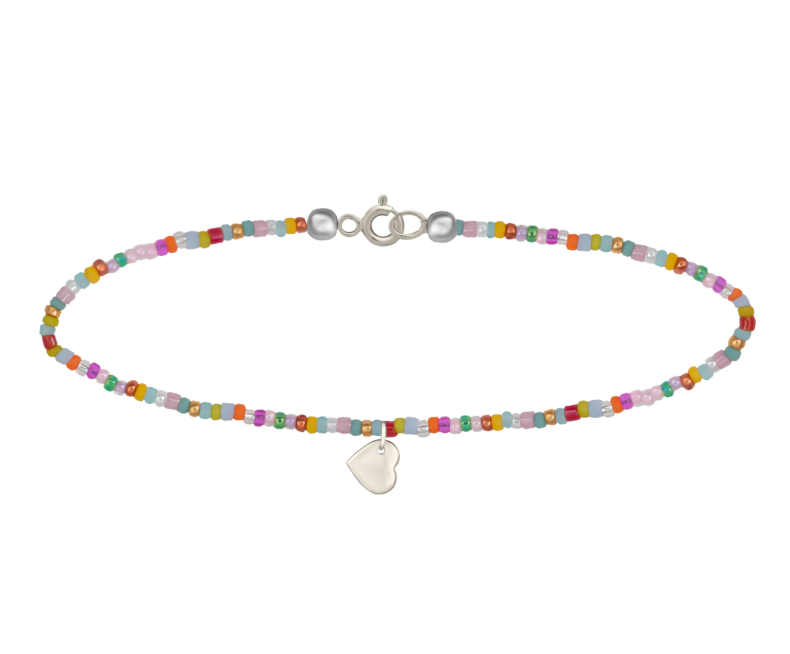 Fazon: Színes Gyöngy Szív Fehér Arany 14K Karkötő