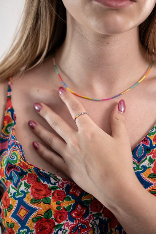 Fazon: Kicsi Színes Gyöngyös Fonál Ezüst 925 Gyűrű