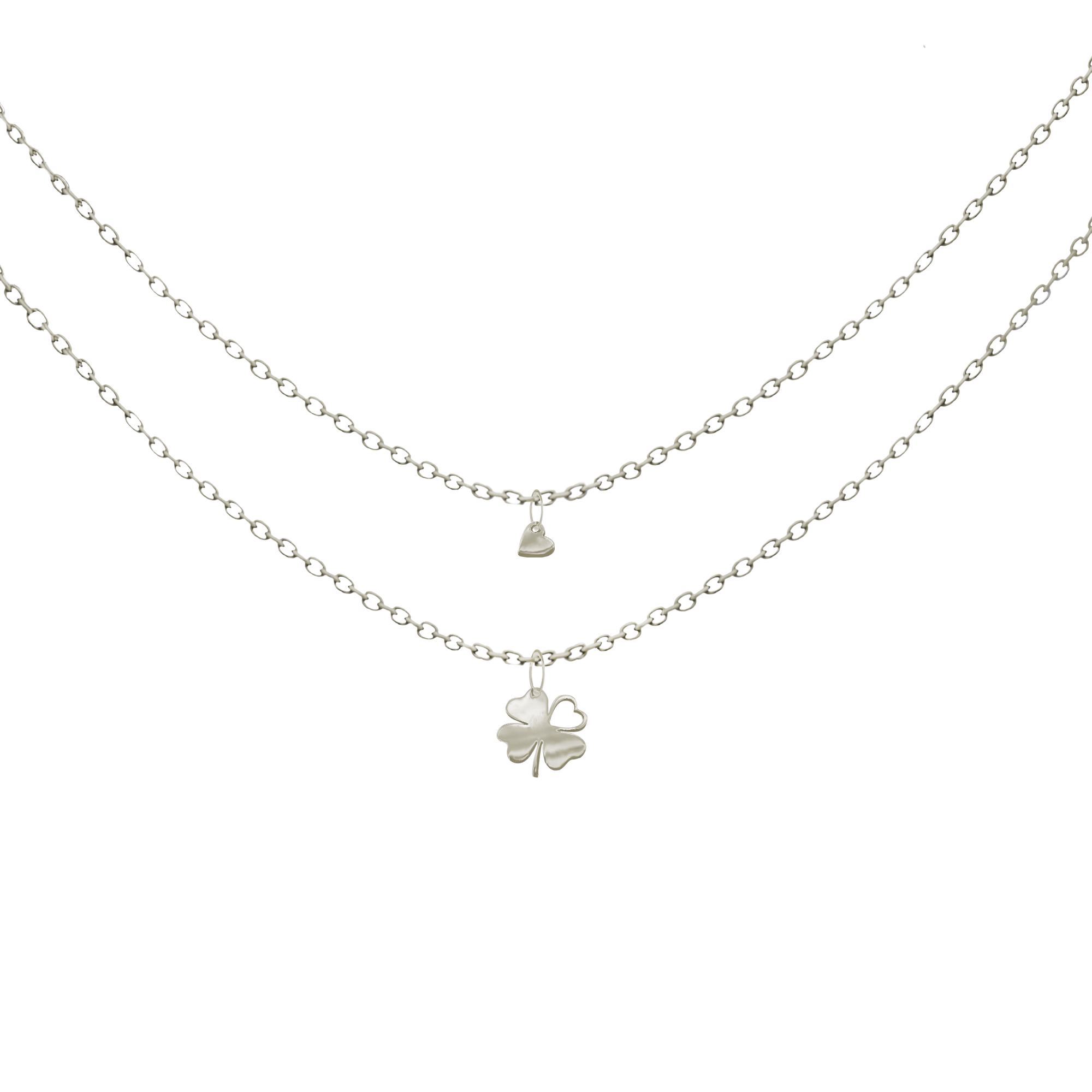 Fazon: Lóhere Szív Fehér Arany 14K Páros Nyaklánc