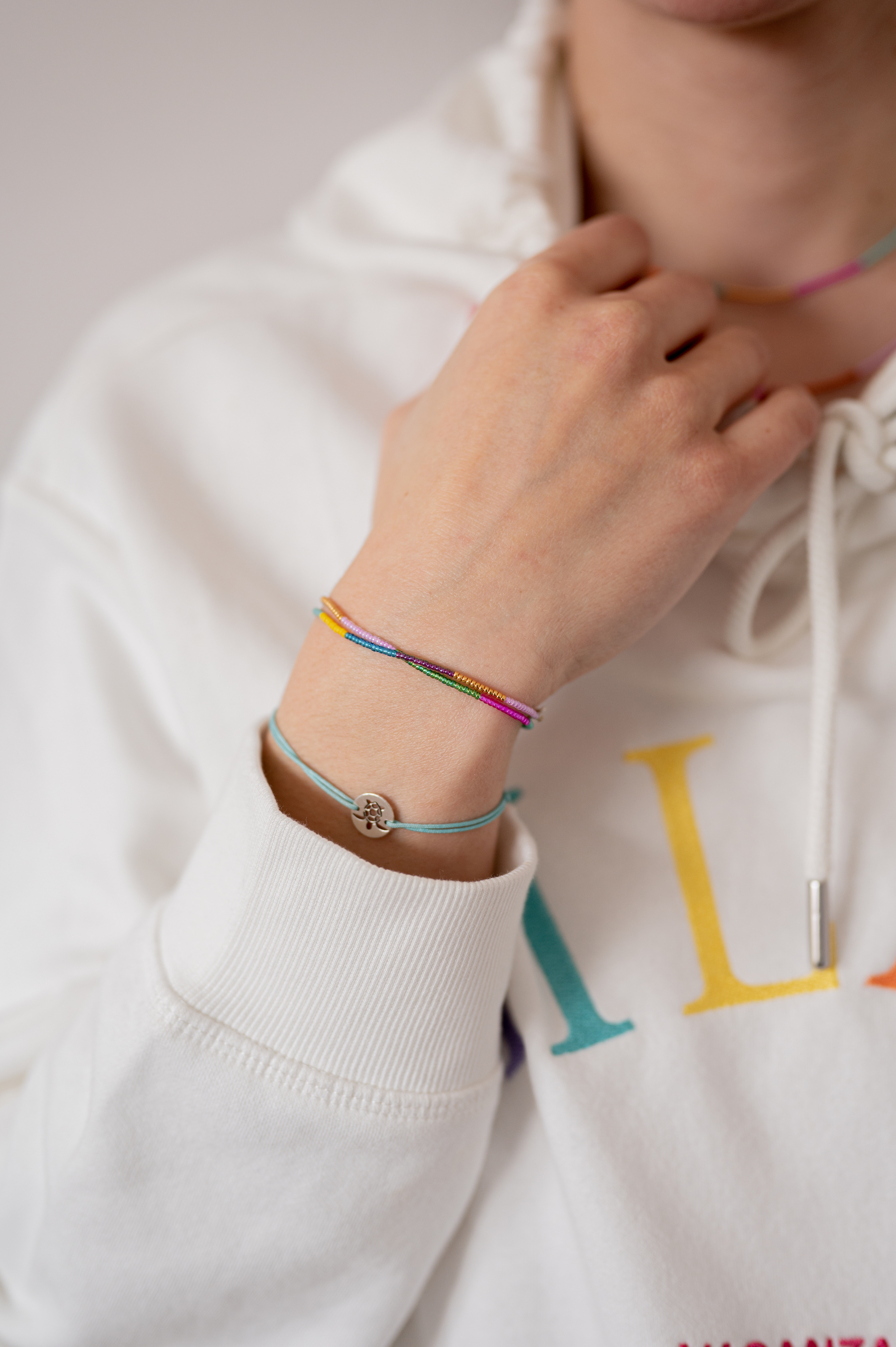 A karkötőket magas minőségű anyagokkal egészítjük ki, mint például a nagy teherbírásó, színtartó szakadásmentes fonál. A tervezés folyamán nagy figyelmet fordítunk, hogy ékszereink tartósságukkal hozzá járuljanak ahhoz, hogy Ön gondtalanul az élet örömeire fókuszálhasson.