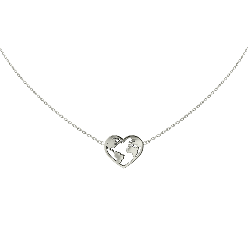 Fazon: Szívben Földgömb Fehér Arany 14K Nyaklánc
