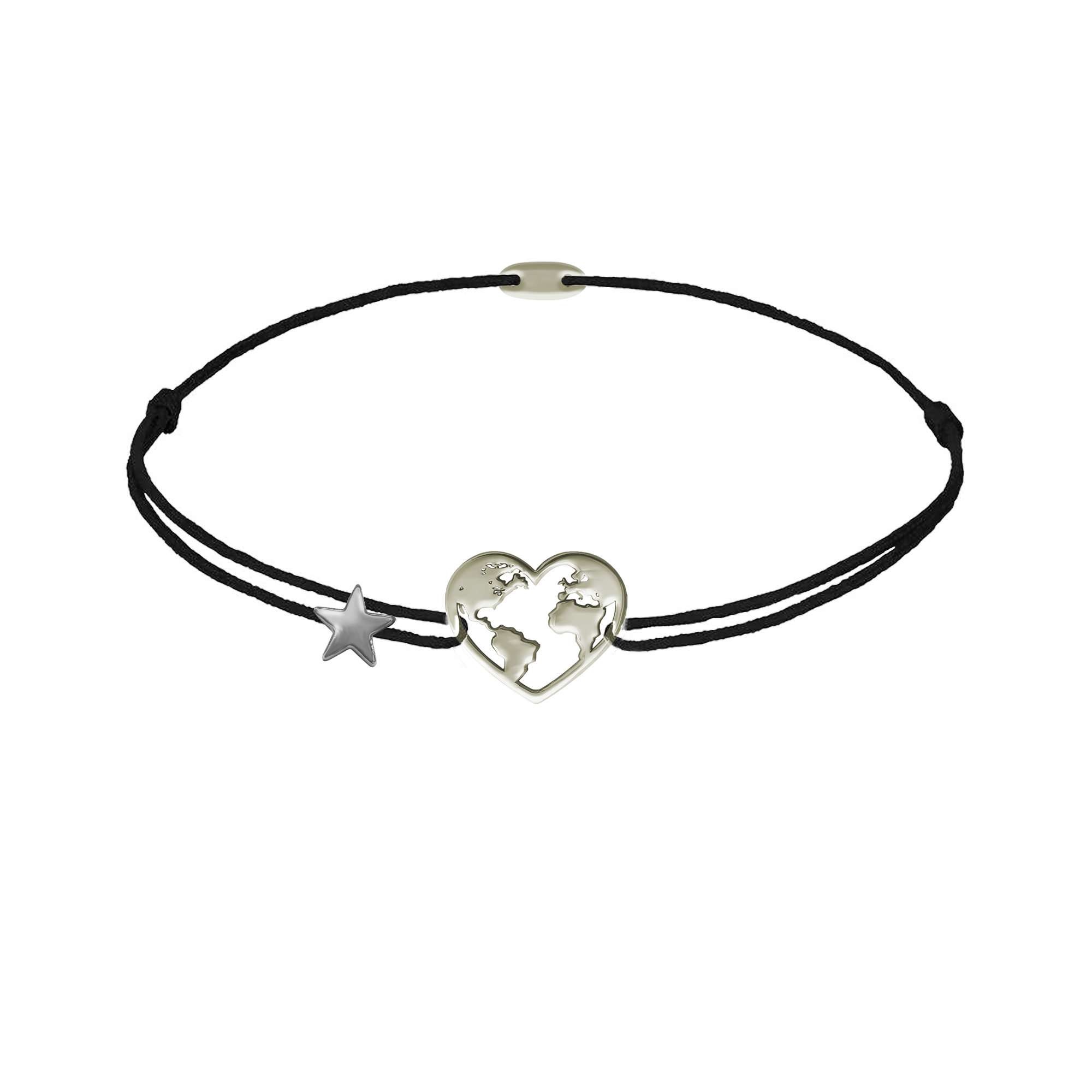 Fazon: Szívben Földgömb Hematit Csillaggal Fehér Arany 14K Fonalas Karkötő
